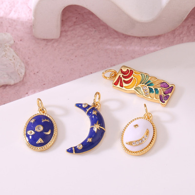 diy飾品配件 微鑲鋯石手鍊掛件幾何型滴油系列 迷你月亮星辰大海