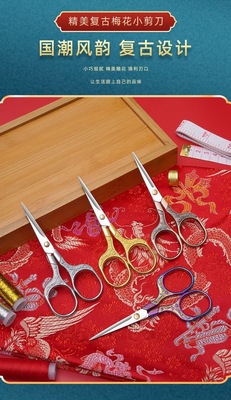 Vintage Plum Blossom Scissors with Gold-Plated Thick Handle