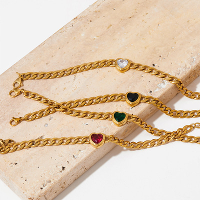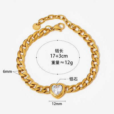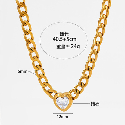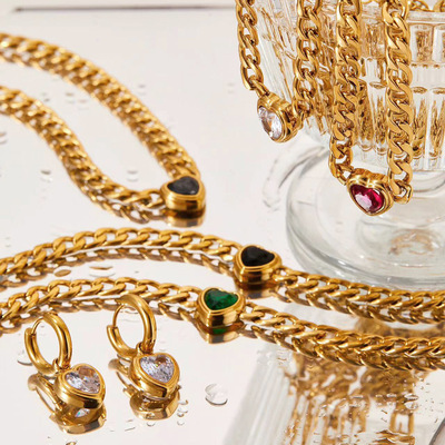 不鏽鋼愛心鋯石吊墜項鍊手鍊耳環首飾套裝 簡約INS風心形鈦鋼飾品