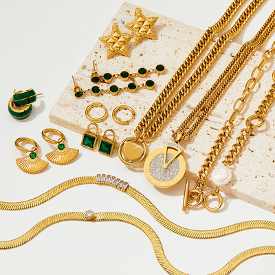 甜酷辣妹高級感輕奢不鏽鋼首飾保色新款組合套裝項鍊手鍊耳環批發