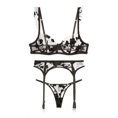Cross-border sexy garter belt French ultra-thin embroidered lace garter bra matching stocking garter belt