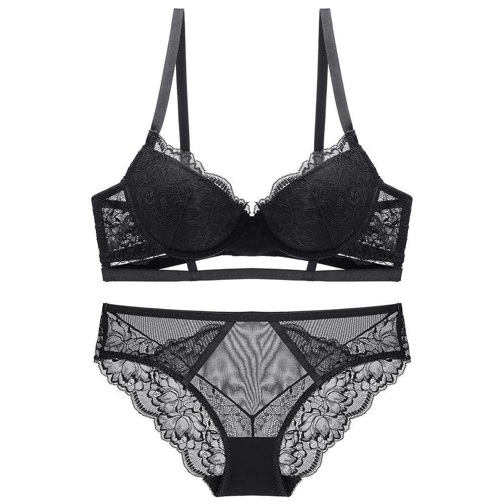 跨境歐美性感蕾絲內衣女小胸聚攏上托胸罩綁帶設計調整型文胸套裝