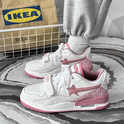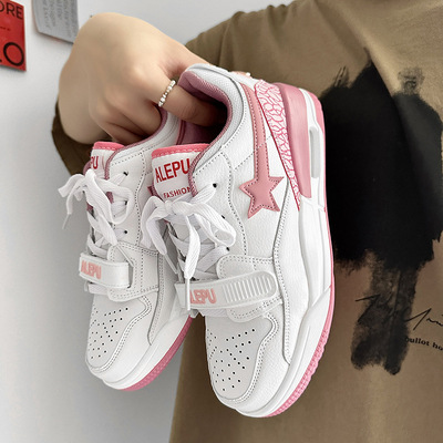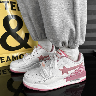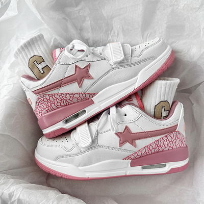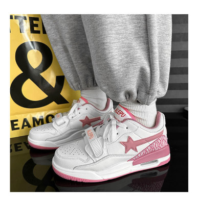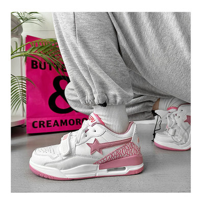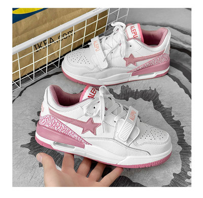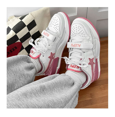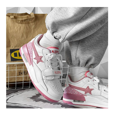 運動鞋女ins潮百搭氣墊休閒星星鞋子港風復古撞色情侶輕便跑步鞋