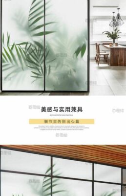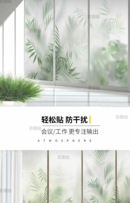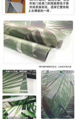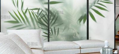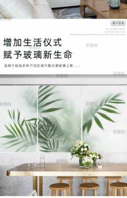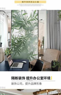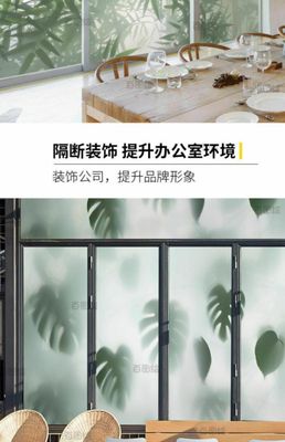 444Z Wholesale Frosted Green Plant Leaf Wall Sticker Painting Translucent and Opaque Office Bathroom Cabinet Door Window