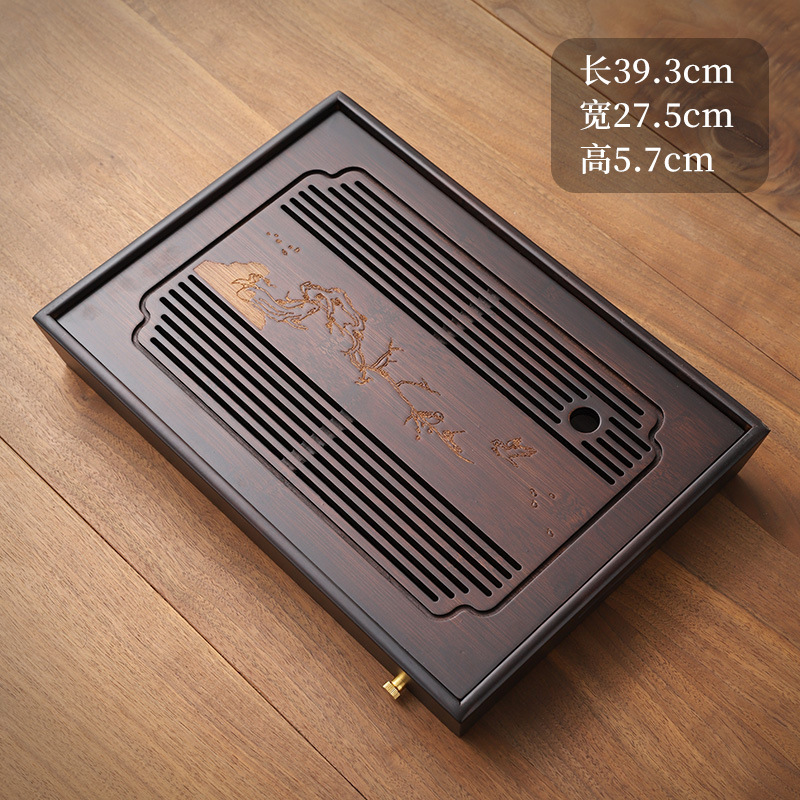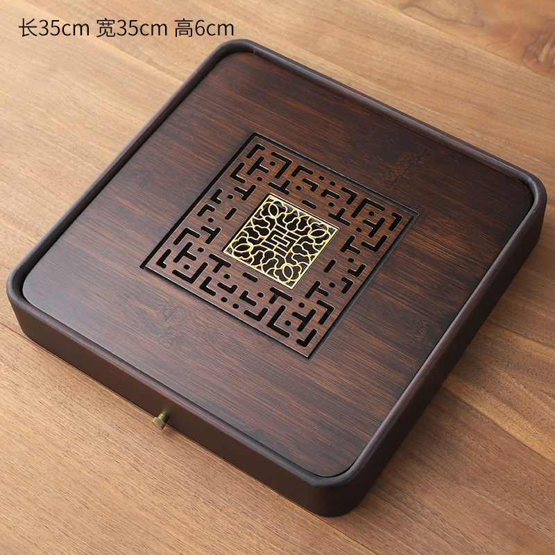 444Z批發竹四方形茶盤家用排水兩用簡易托盤實木茶具干泡小型儲水
