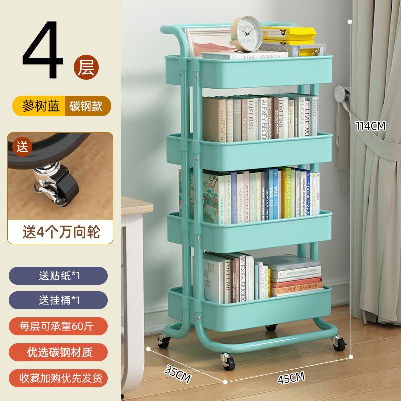 OD59 wholesale bookshelf rack floor-standing multi-layer wheeled trolley desk side reading book storage small