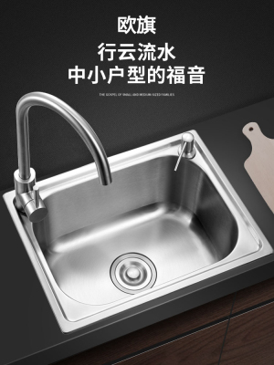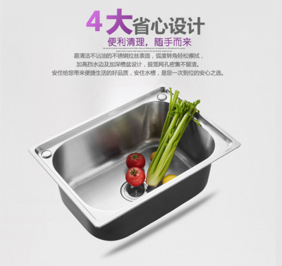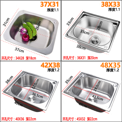 OD59 wholesale thickened SUS304 stainless steel sink size single tank kitchen sink basin single plate