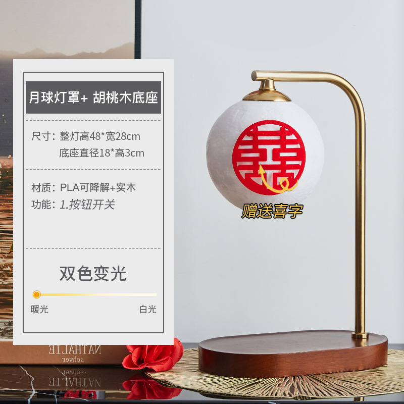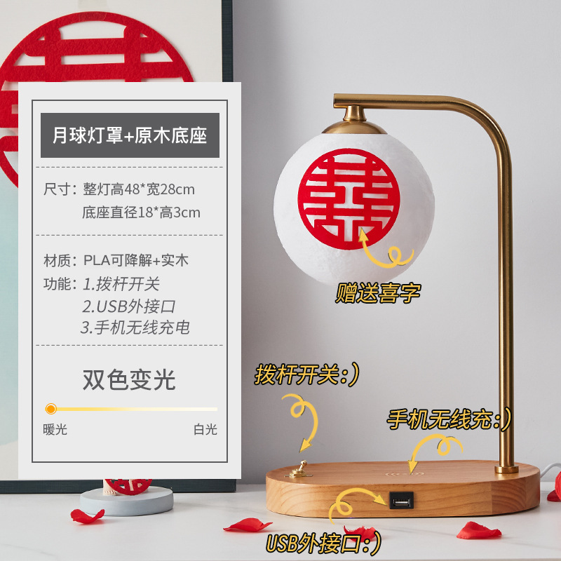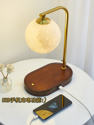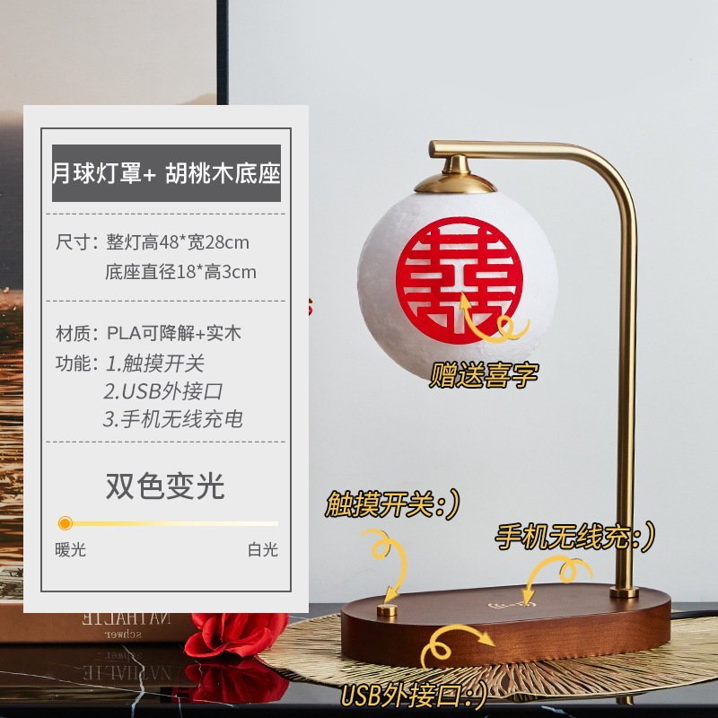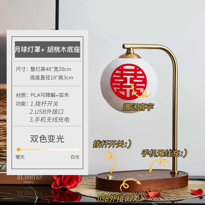 Moon lampshade + walnut color - lever switch + USB charging interface + wireless charging Moon lampshade