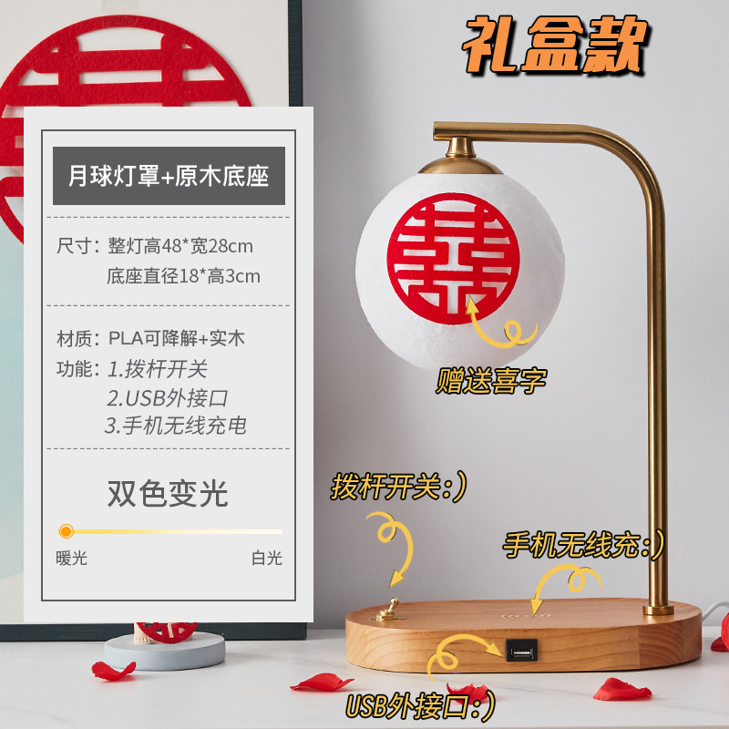 Moon lampshade + wood color - lever switch + USB charging interface + wireless charging + gift box packaging Moon lampshade