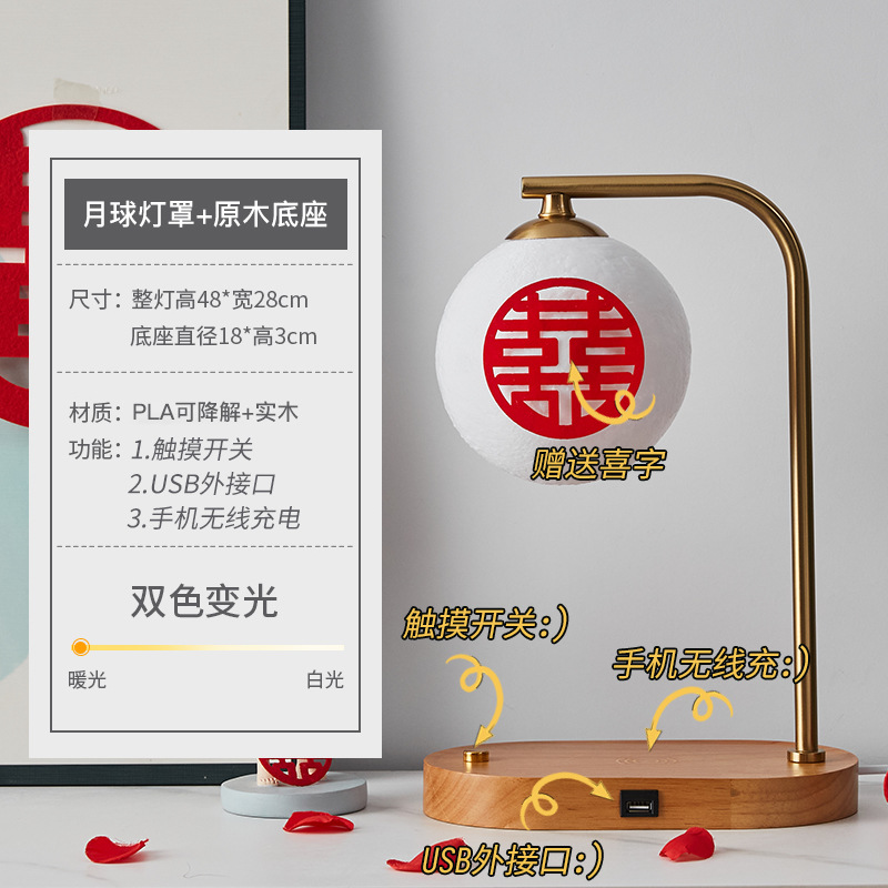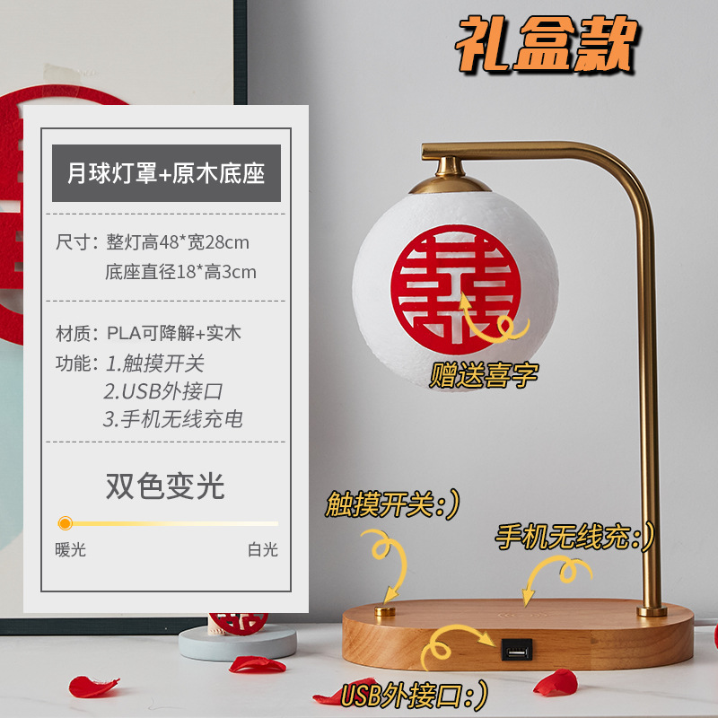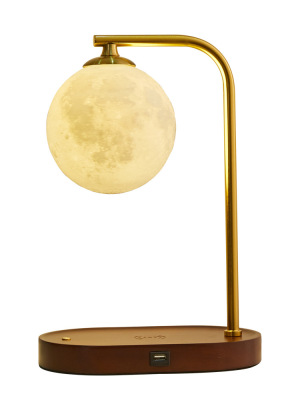 Moon lampshade + wood color - touch switch + USB charging interface + wireless charging + gift box packaging Moon lampshade