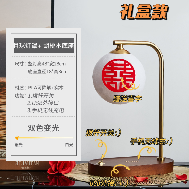 Moon lampshade + walnut color - lever switch + USB charging interface + wireless charging + gift box packaging Moon lampshade