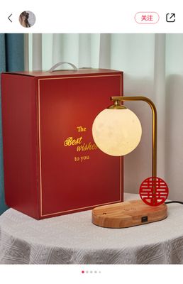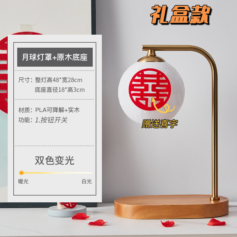 Moon lampshade + wood color-button switch-gift box packaging Moon lampshade