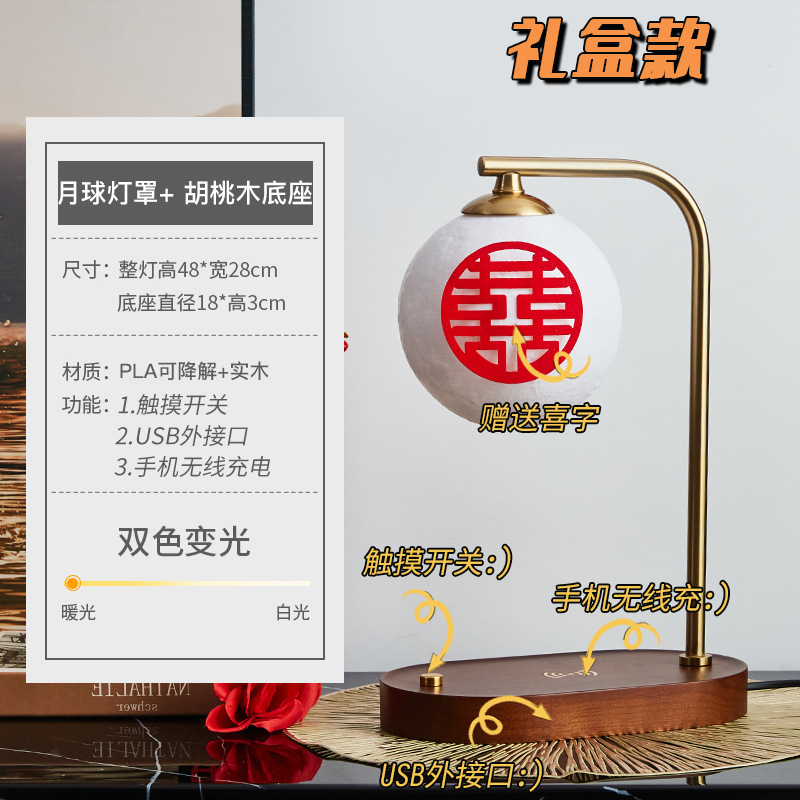 Moon lampshade + walnut color - touch switch + USB charging interface + wireless charging + gift box packaging Moon lampshade