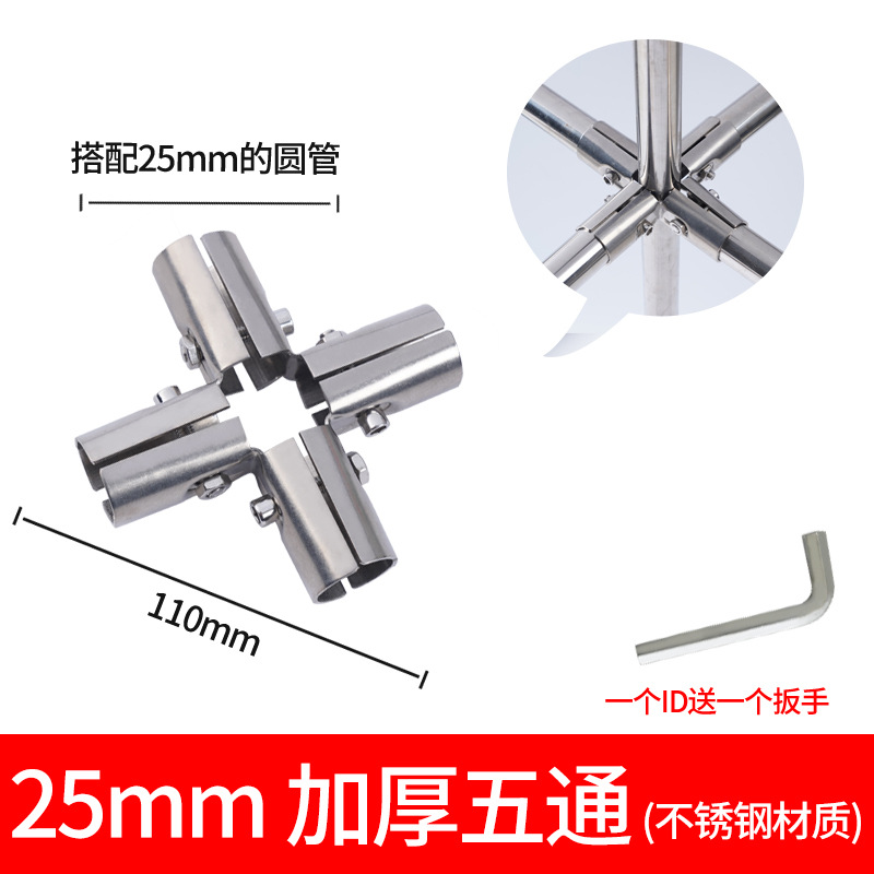 Wholesale 25 round pipe joints stainless steel pipe connectors steel pipe fasteners clothes rack accessories shelf fasteners fixed