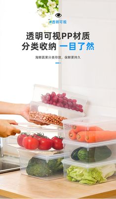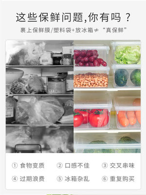 5YA1批發保鮮盒冰箱冷藏專用收納盒飯盒塑料長方形密封儲物盒子帶