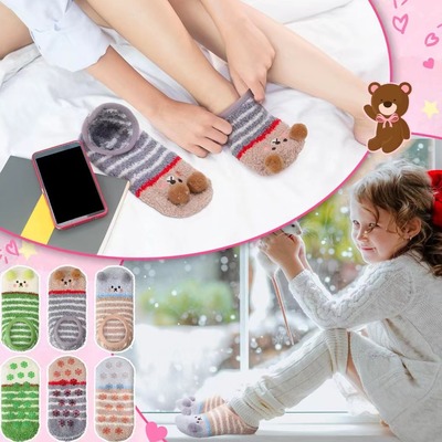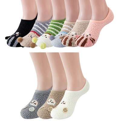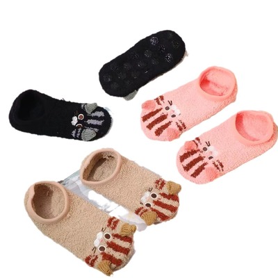 Women's Warm Floor Socks Fluffy Fun Anti-Slip Socks Animal Plush Socks Slippers Socks Plus Velvet Women's Coral Fleece One Size