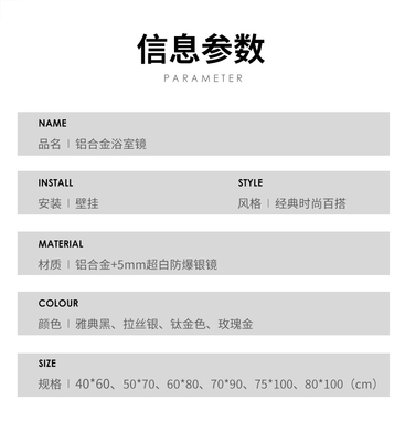 5YA1 wholesale aluminum alloy explosion-proof wall-mounted waterproof bathroom mirror wall-mounted framed bathroom toilet toilet