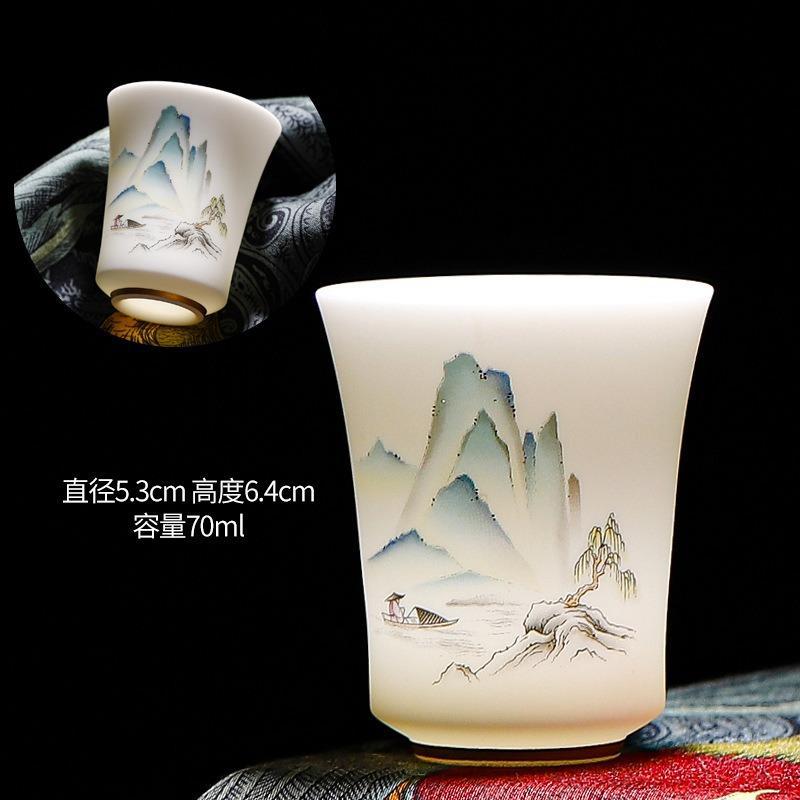 羊脂玉茶杯個人杯茶杯陶瓷主人杯單杯茶杯個人品茗杯茶杯批發