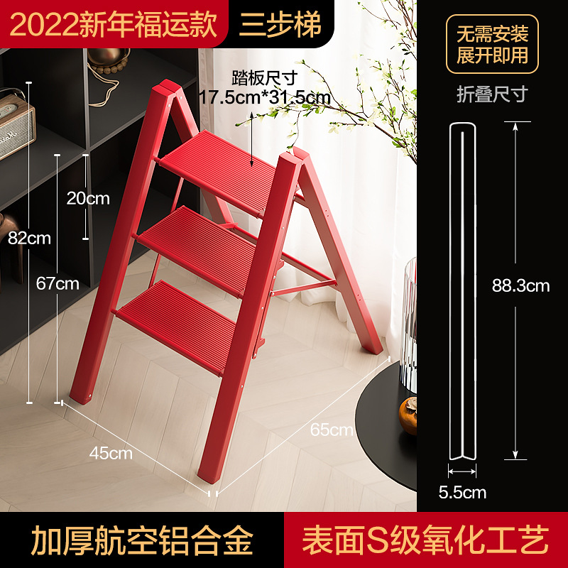 Step Count: 【2022 New Model】Jili Red Three-Step Ladder (Good Fortune + Good Luck