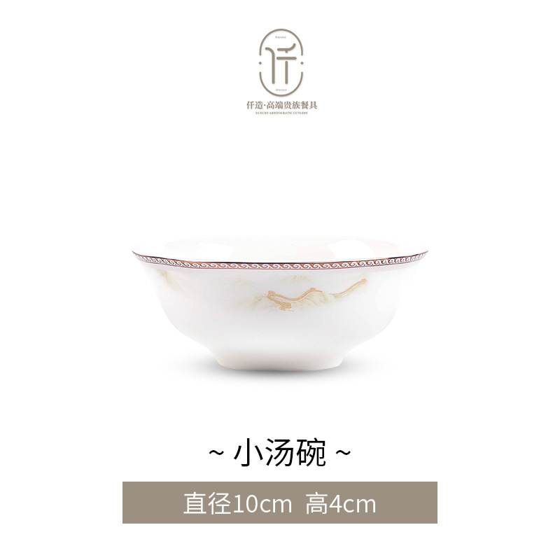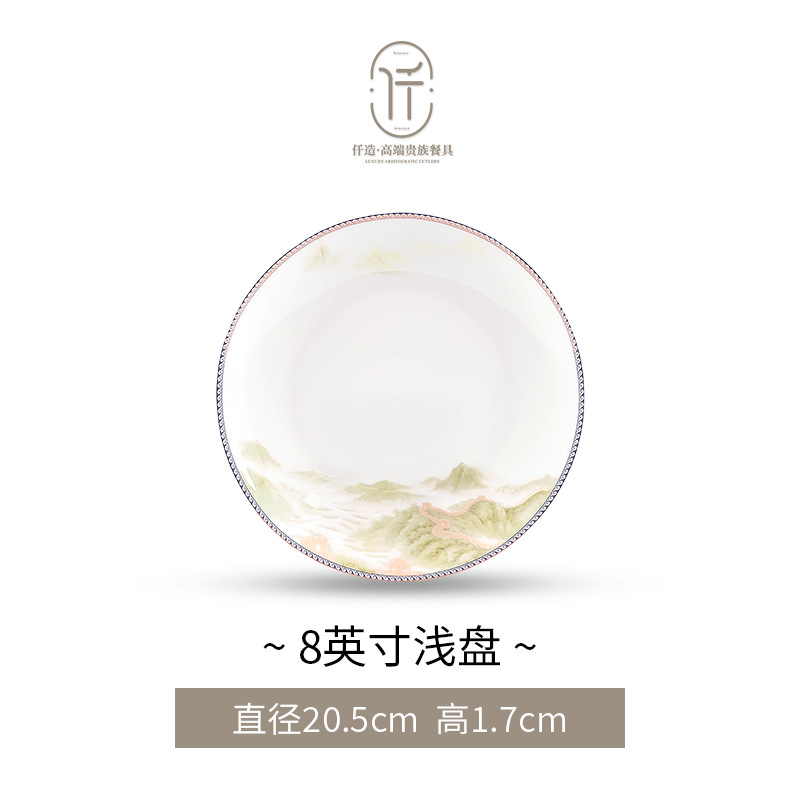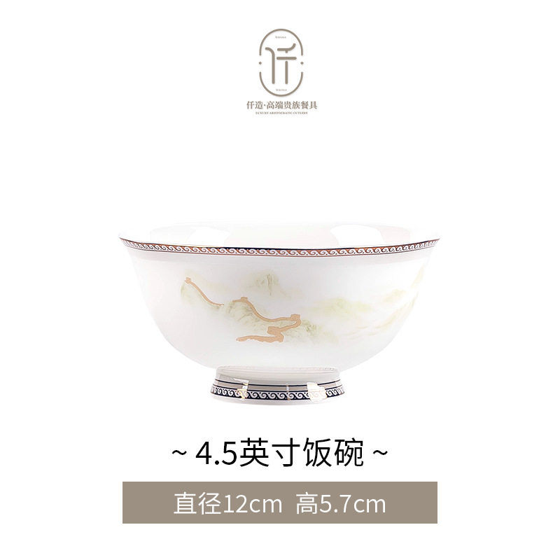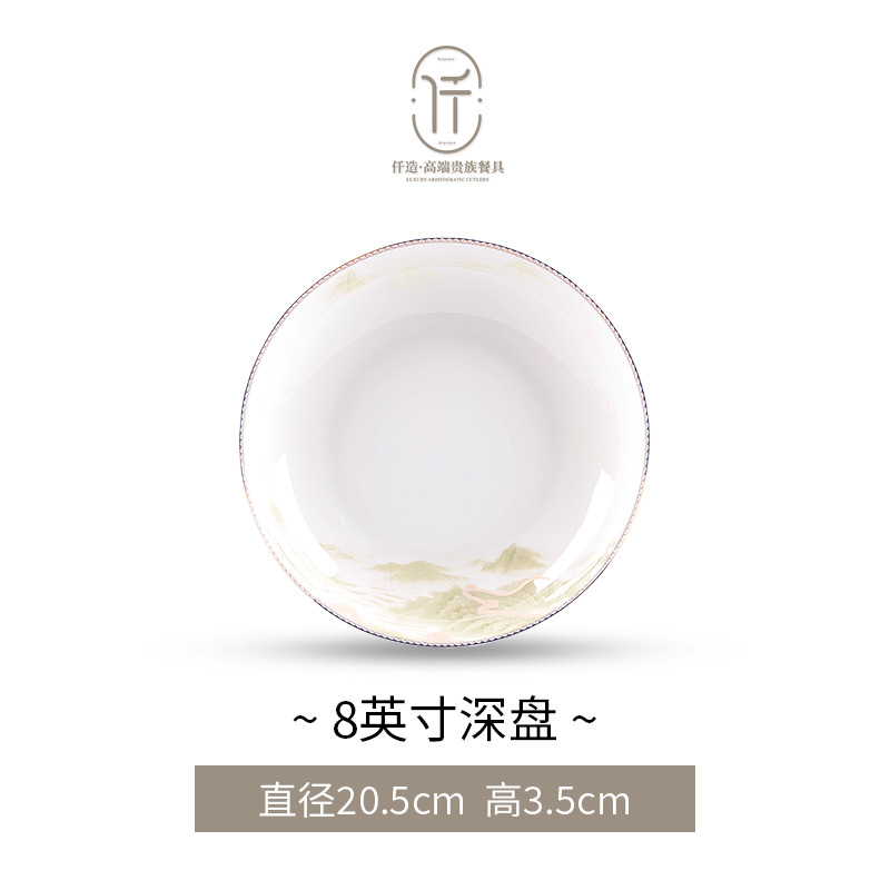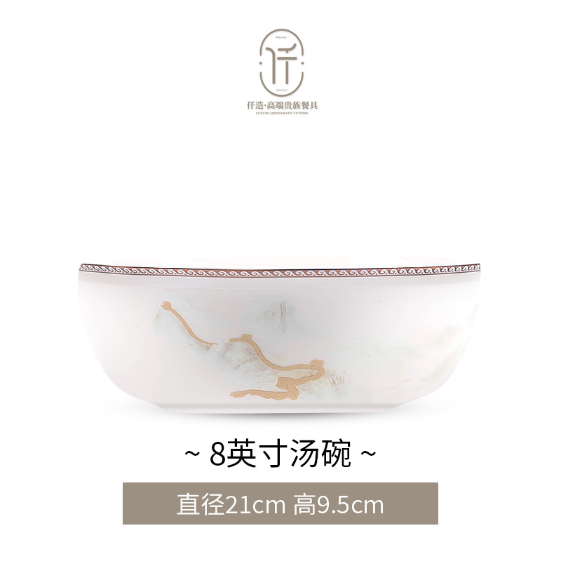 New Chinese-style light luxury landscape Jingdezhen bone china tableware set for moving into a new home, ceramic bowls, plates, and chopsticks, Chinese-style light luxury bowl set
