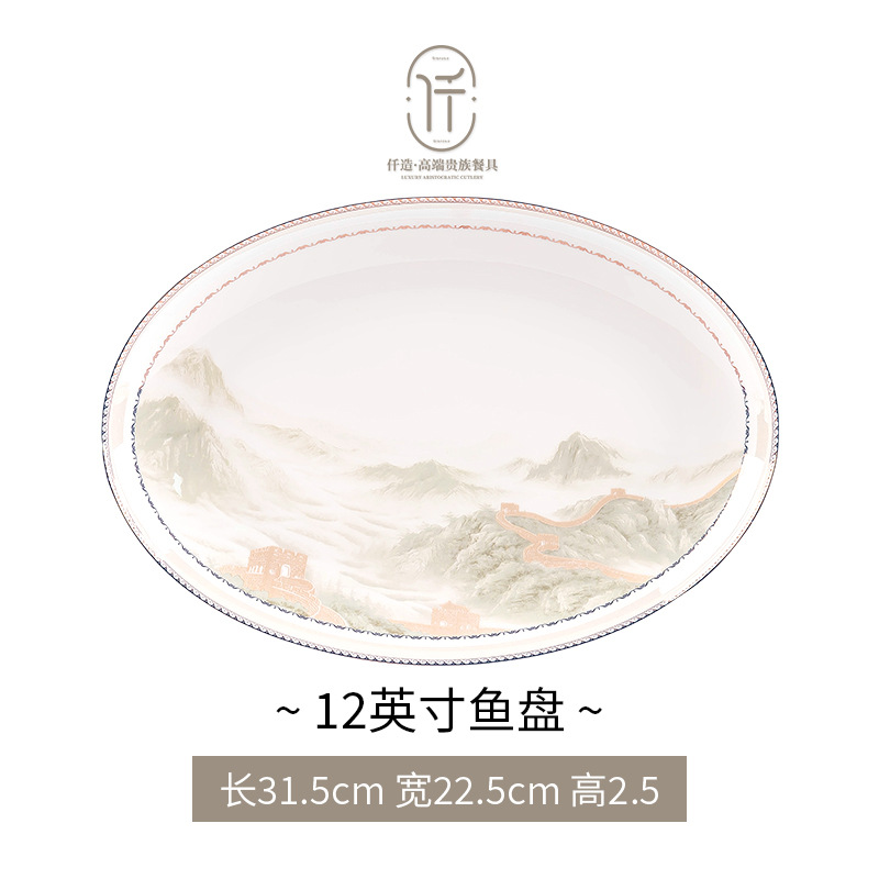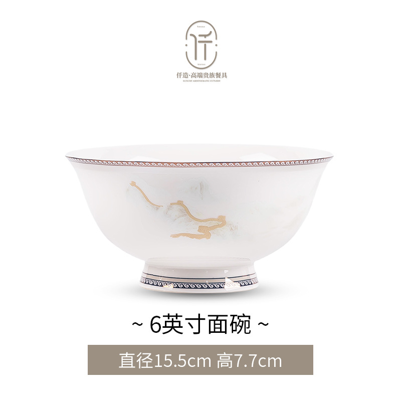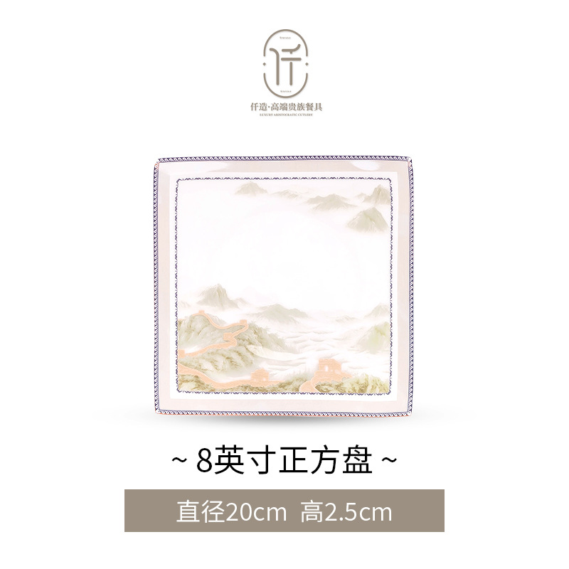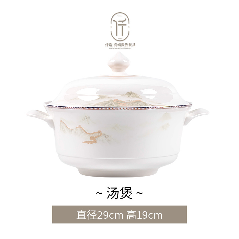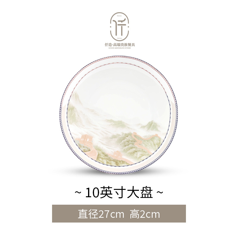 New Chinese-style light luxury landscape Jingdezhen bone china tableware set for moving into a new home, ceramic bowls, plates, and chopsticks, Chinese-style light luxury bowl set