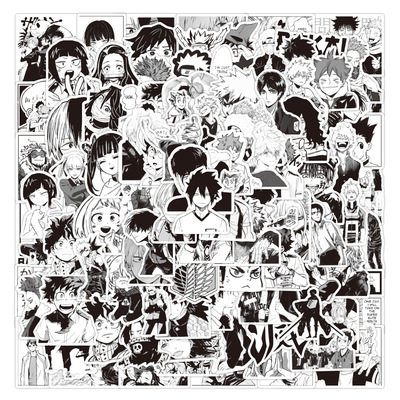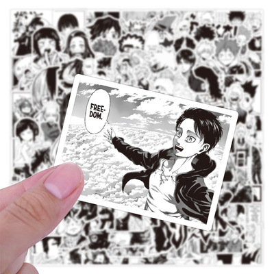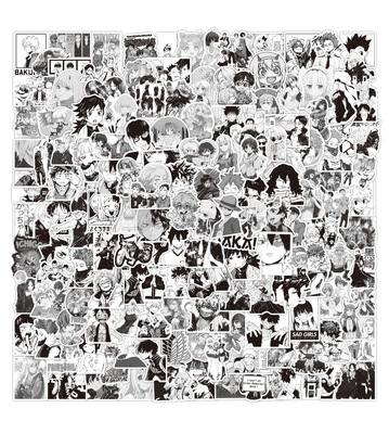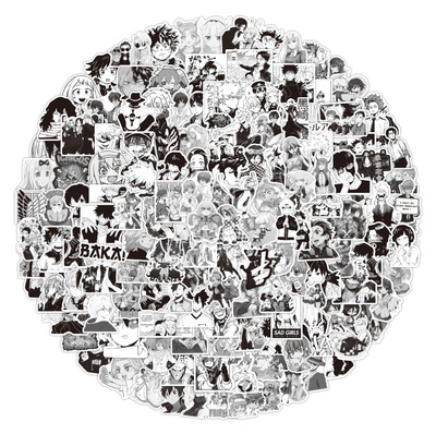100張動漫黑白風系列塗鴉貼紙筆記本滑板行李箱防水貼紙批發