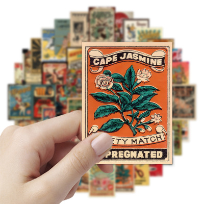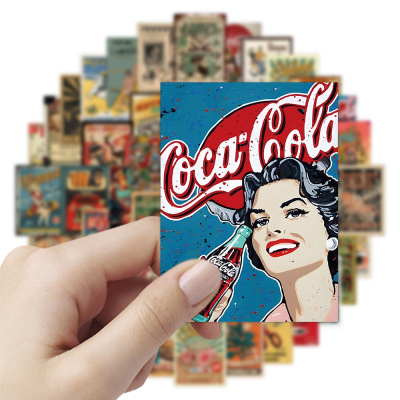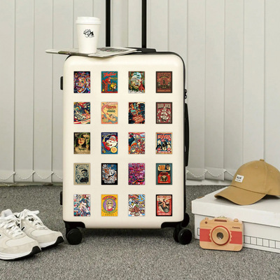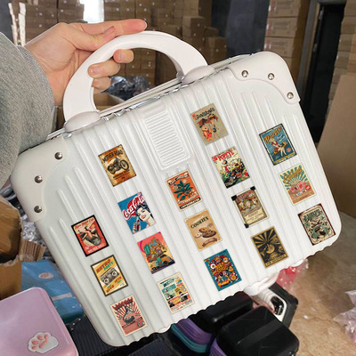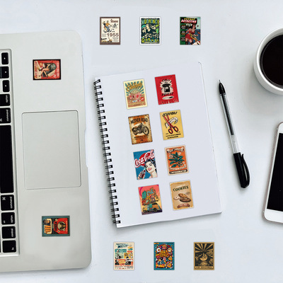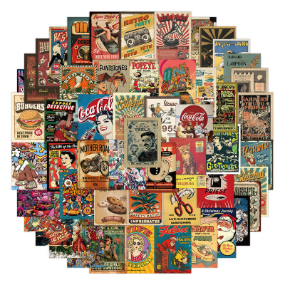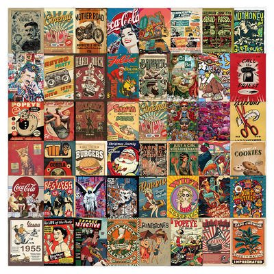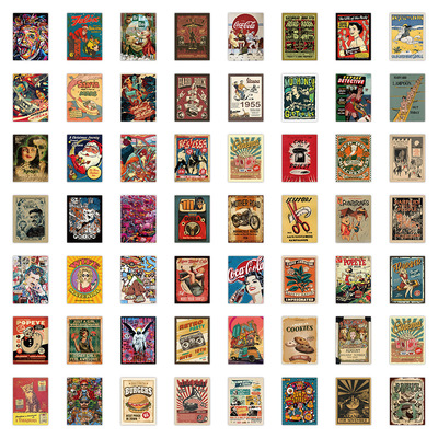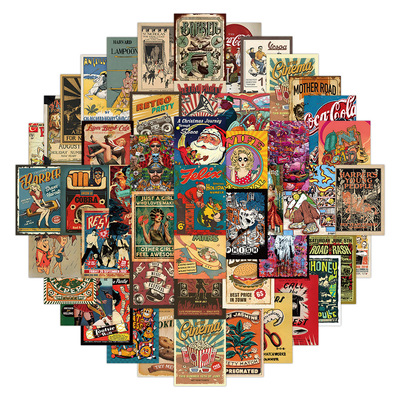 60張跨境新款美式復古海報貼紙冰箱洗衣機行李箱柜子杯子防水貼紙