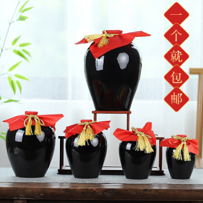 Wholesale black glaze ceramic wine jars and bottles 1 pound 2 pounds 3 pounds 5 pounds 10 pounds, household original juice wine accessories sealed bottles with wine stopper