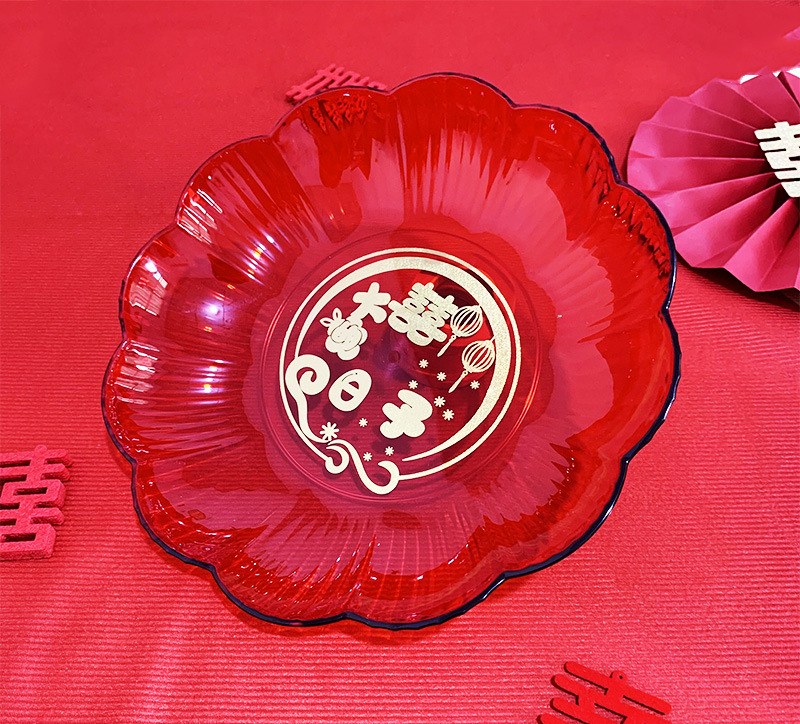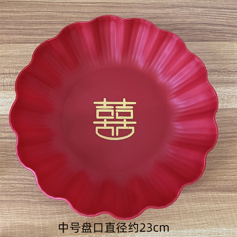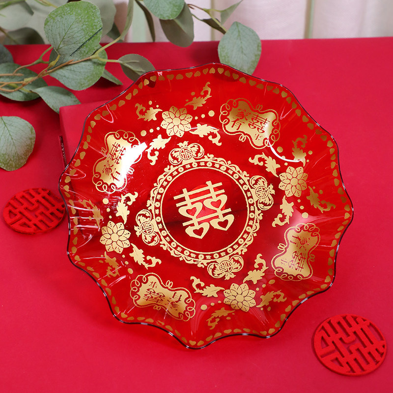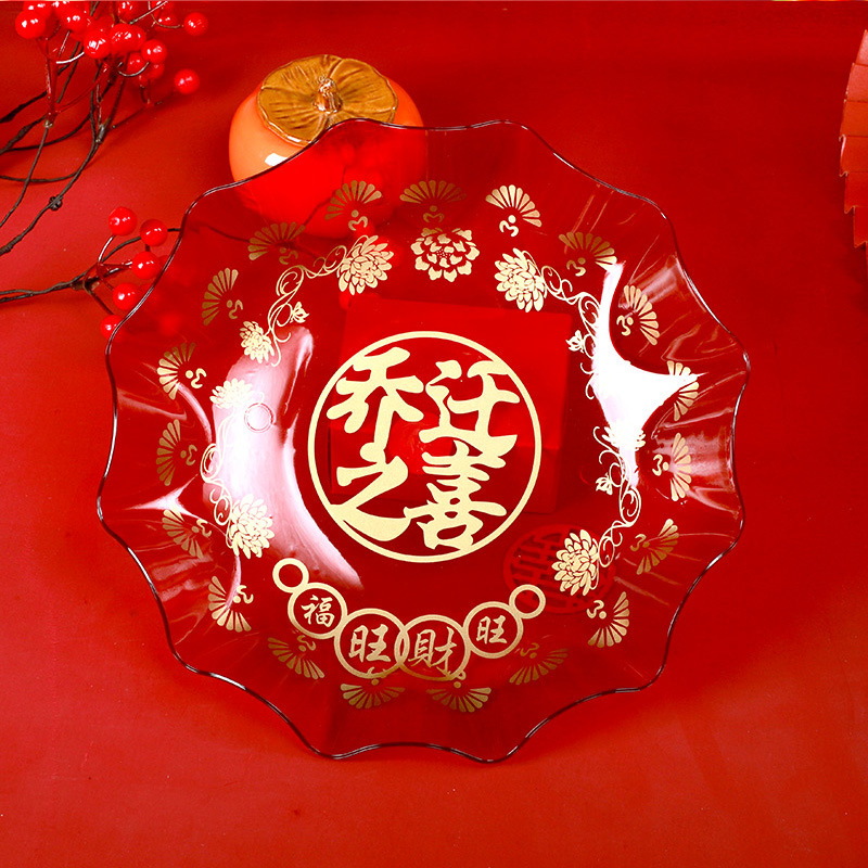Batch red fruit basket festive supplies candy tray household snack tray small plastic lucky character wedding celebration fruit basket