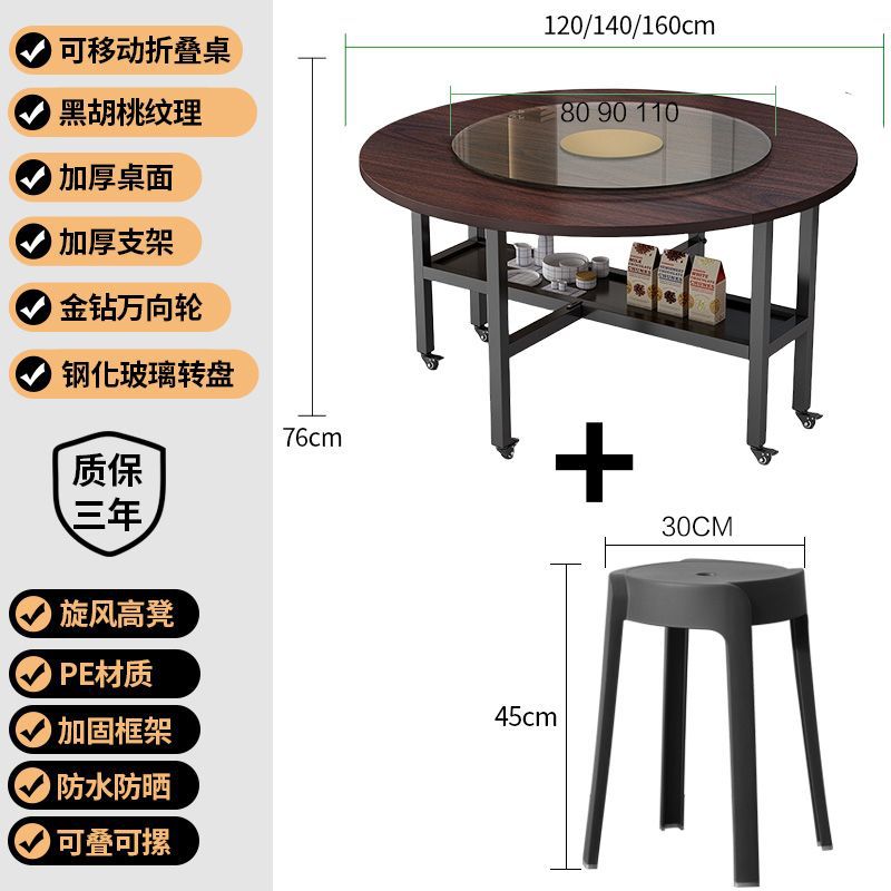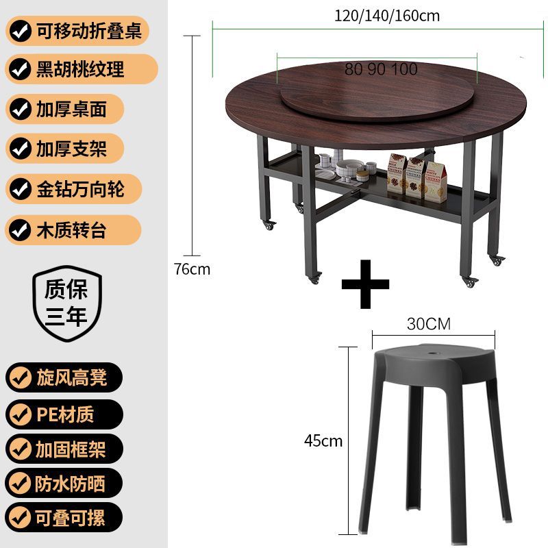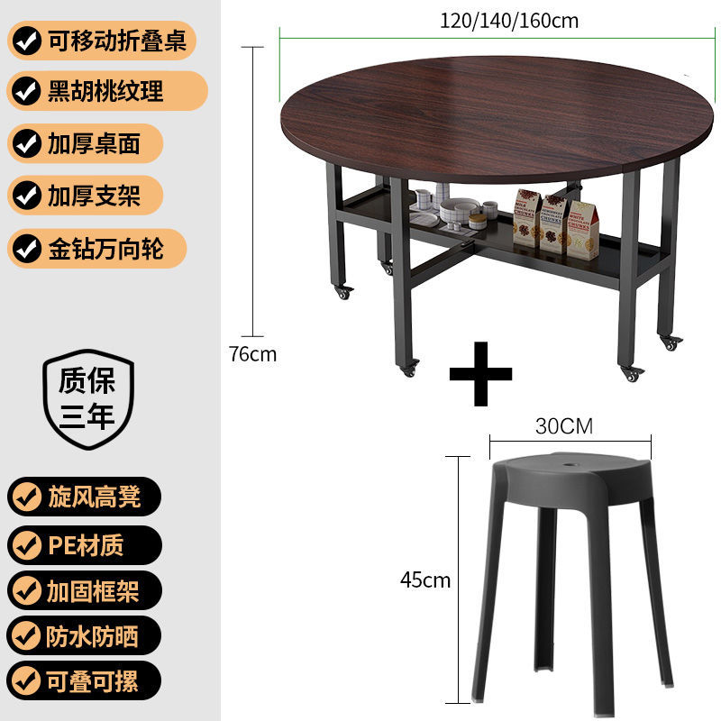 w! Folding table household small apartment foldable dining table round tabletop dining table dining table mobile simple large round tabletop