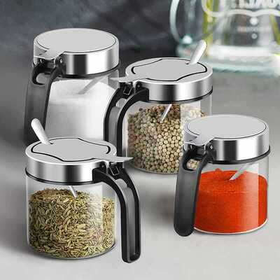 Set of Spices, Spice Bottle, Spice Pot, Condiment Box, Glass Condiment Bottle, Household Kitchen, Stainless Steel Lid, Large Size
