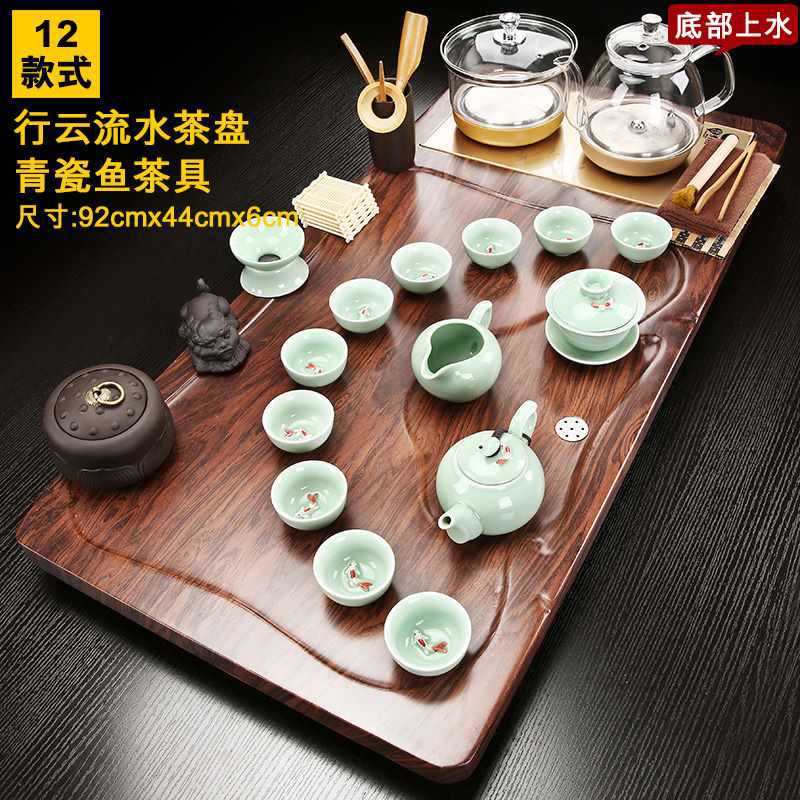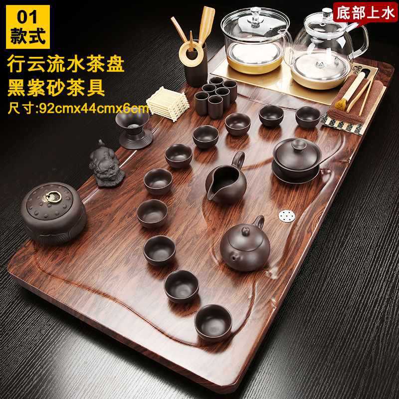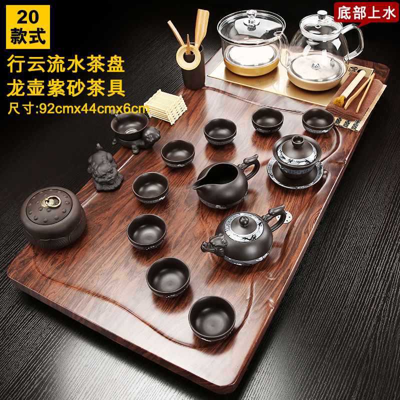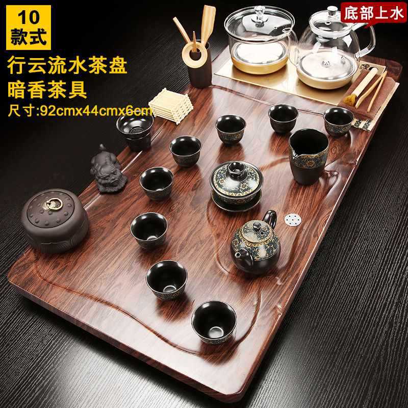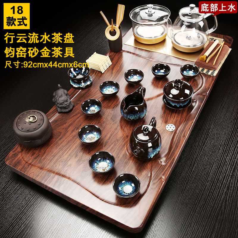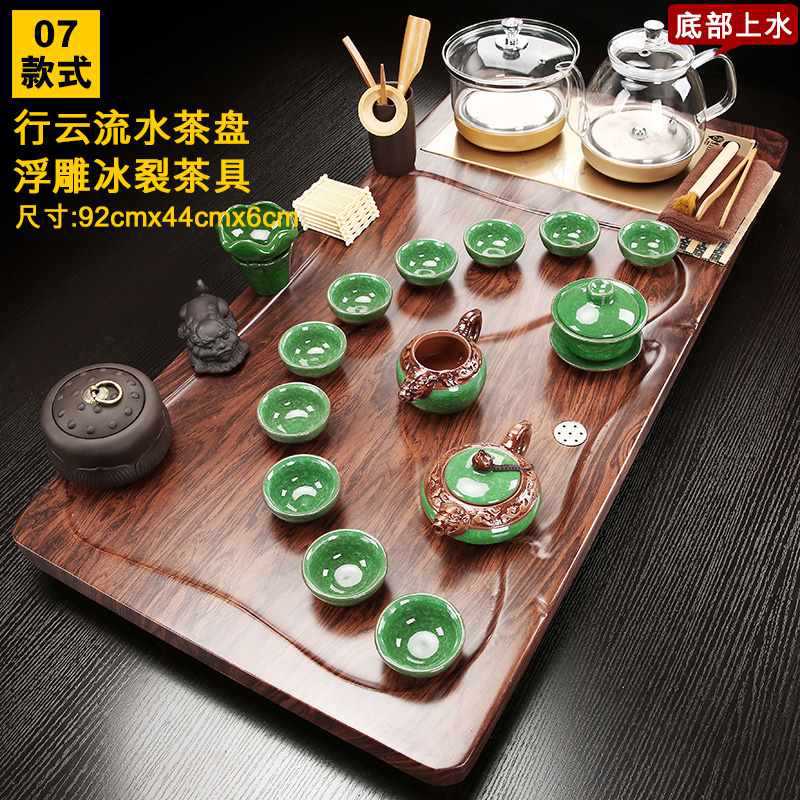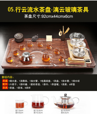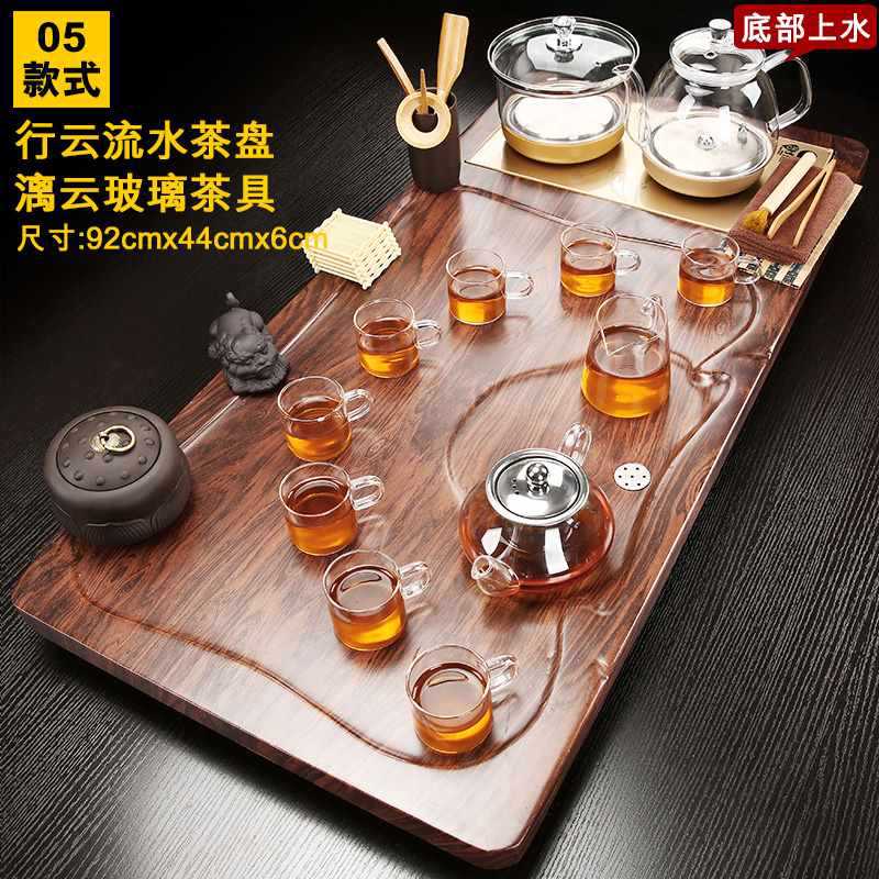 Fully automatic tea tray with water on the bottom, glass kettle, one-piece kung fu tea set, complete set of household simple tea sets