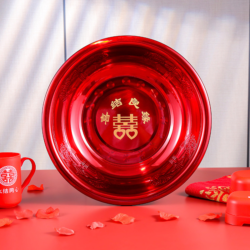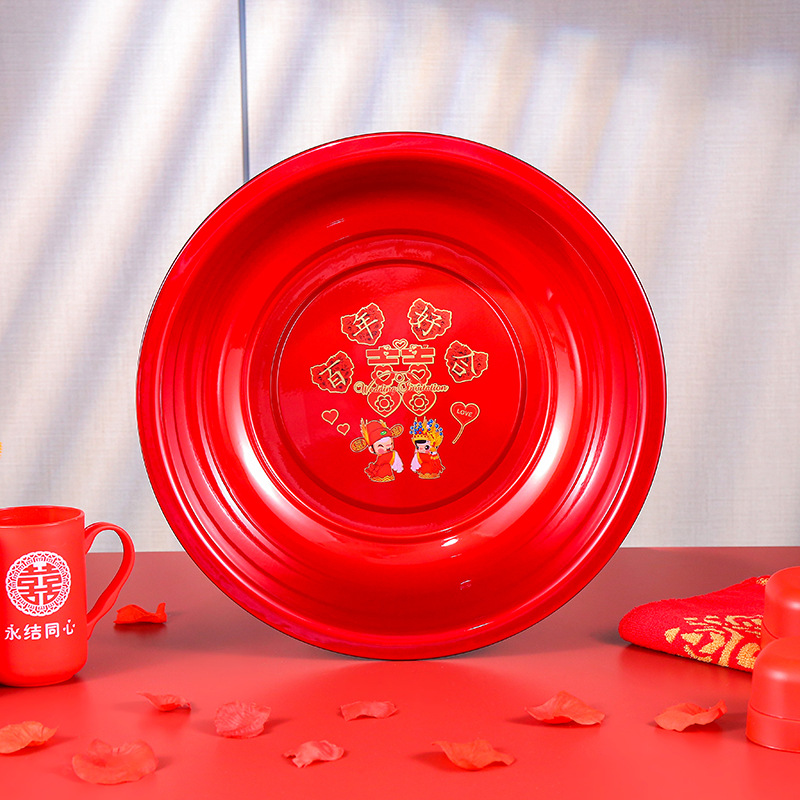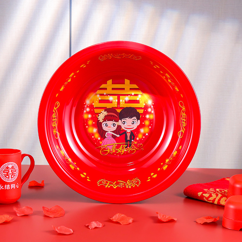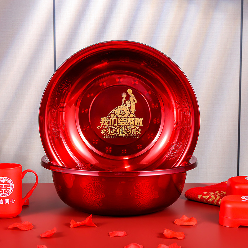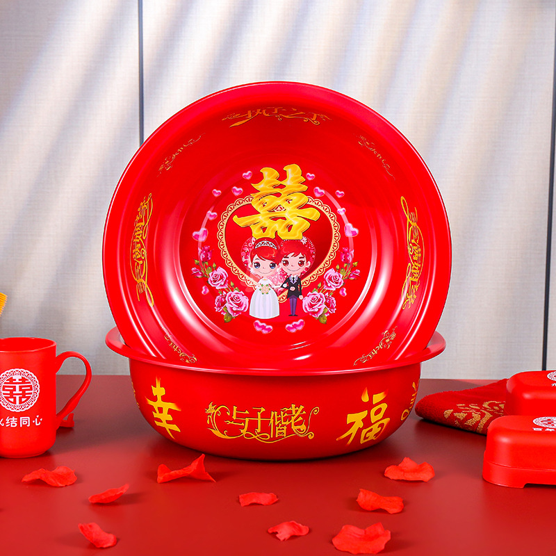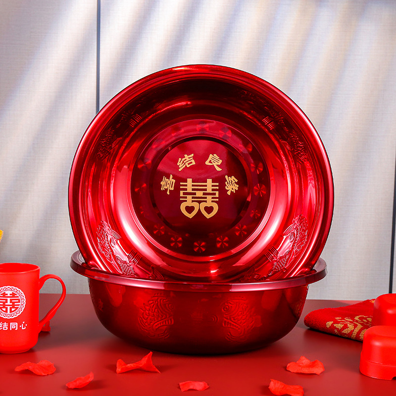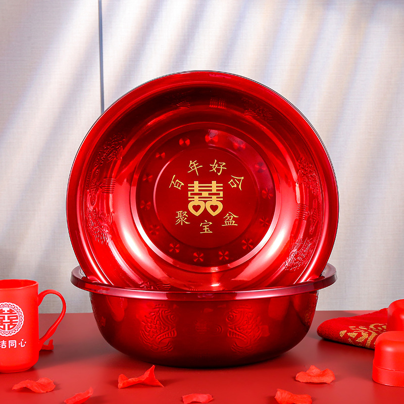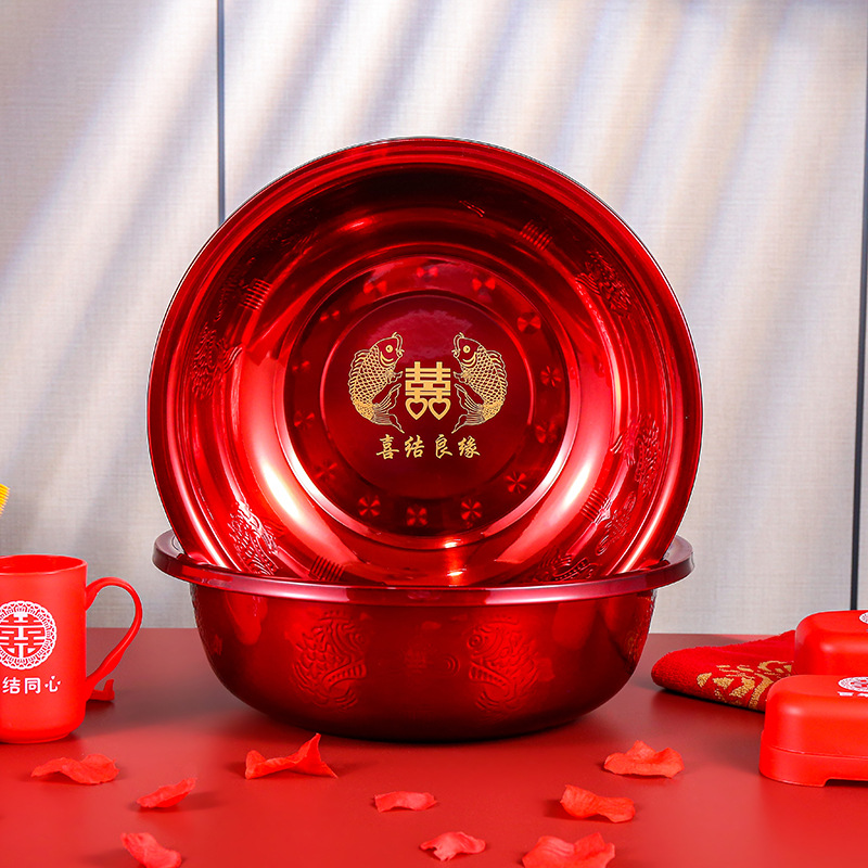 結婚臉盆一對紅色婚慶喜慶紅盆新娘陪嫁用品大全女方嫁妝洗臉喜盆