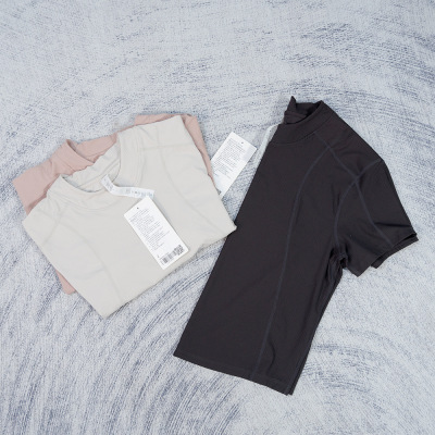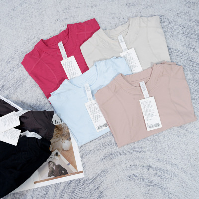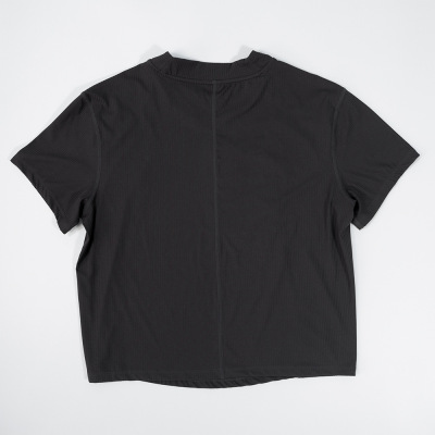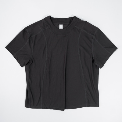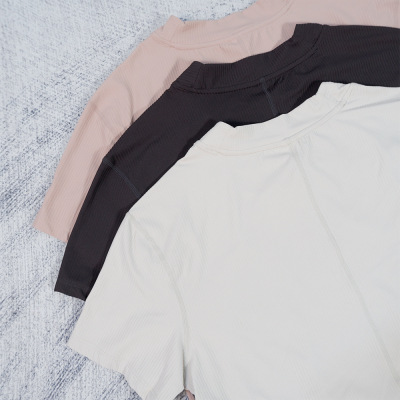 Wide-ribbed yoga wear, casual women's cropped T-shirt with a round neckline—breathable, loose-fitting, highly elastic, and featuring sporty striped short sleeves.