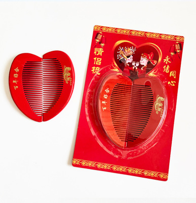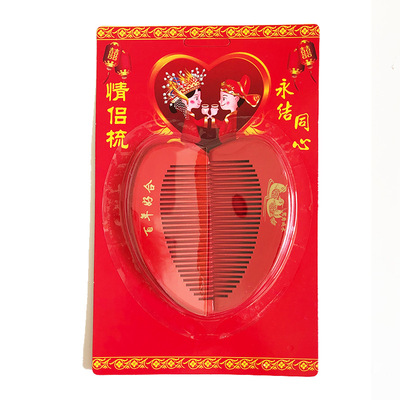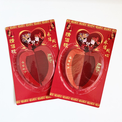 心形木梳紅色批發婚慶用品喜慶梳子結婚情侶一對新人新娘發梳陪嫁