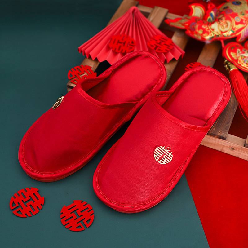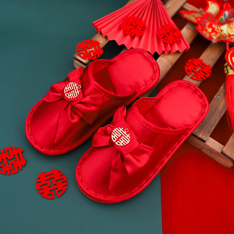 結婚紅色拖鞋一對冬季情侶室內家居喜慶新郎新娘婚慶創意包頭棉拖
