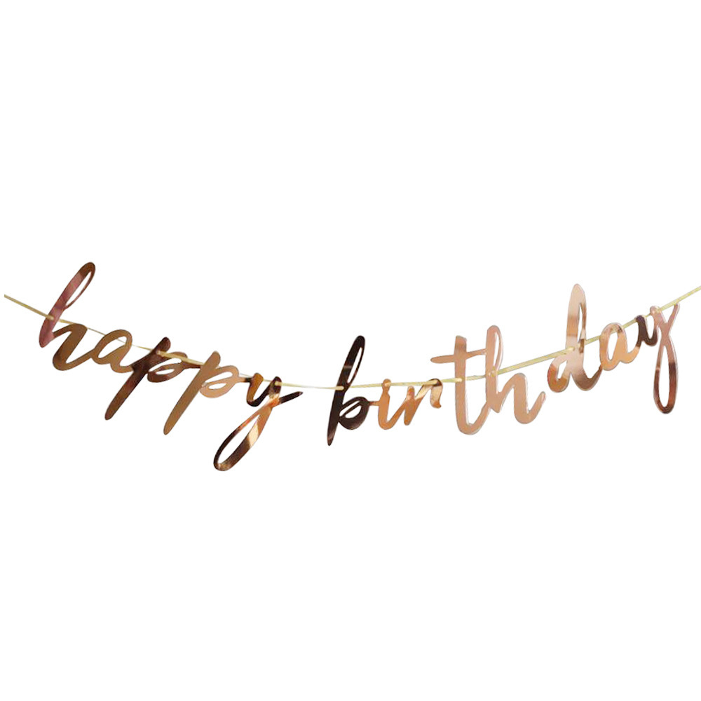 廠家 新款小寫連體生日拉旗拉花 燙金happy birthday生日橫幅