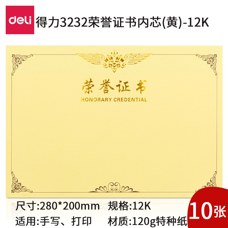 得力榮譽證書企業聘書榮光系列榮譽證件8K12K16K絨面證書