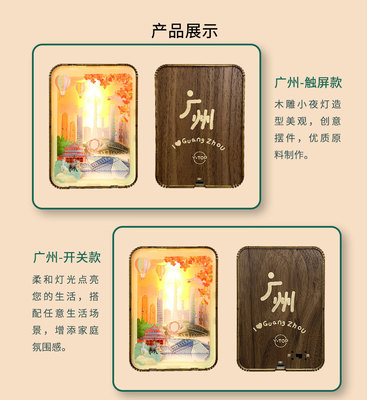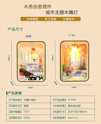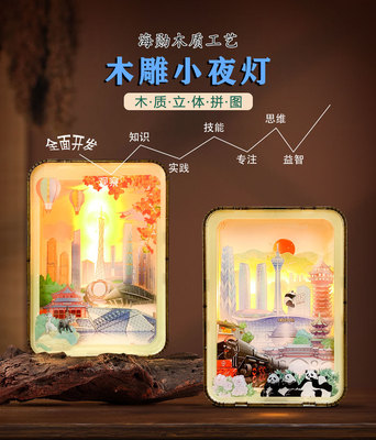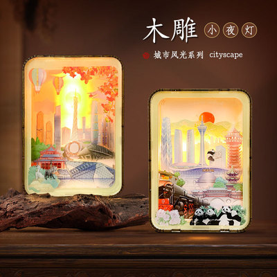 景區熱賣紀念品廣州成都木雕燈可調節亮度小夜燈創意手工拼裝禮物