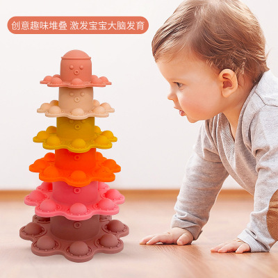 New silicone children's octopus Jenga creative cartoon stacking circle baby early education educational stacking circle toy