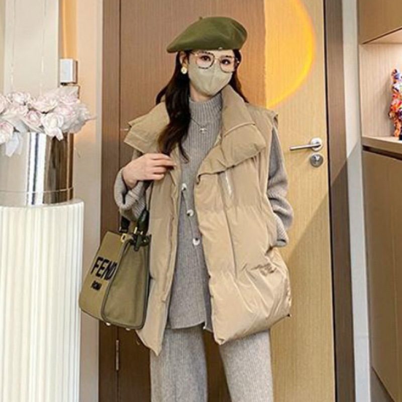 孕婦裝秋冬款棉服馬甲韓版簡約顯瘦立領針織上衣時尚闊腿長褲套裝