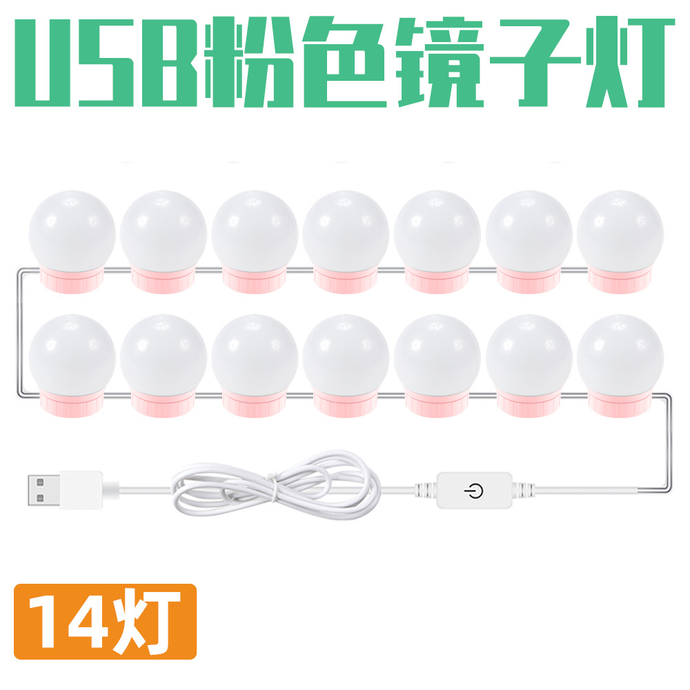 Cross-border best-selling LED Hollywood mirror light with adjustable brightness pink makeup mirror light USB touch control mirror light