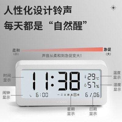 得力8826多功能電子鬧鐘創意學生用床頭臥室簡約數字智能男女兒童