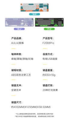 Wolf Spider F2088Pro mechanical keyboard, high-looking green axis, red axis, tea axis, e-sports gaming keyboard with magnetic upper cover