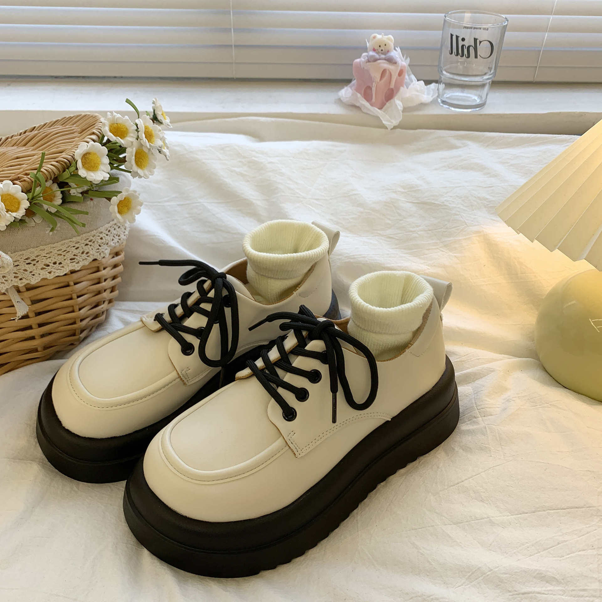 2023新款厚底松糕跟JK小皮鞋經典樂福鞋單鞋小白鞋百搭女鞋