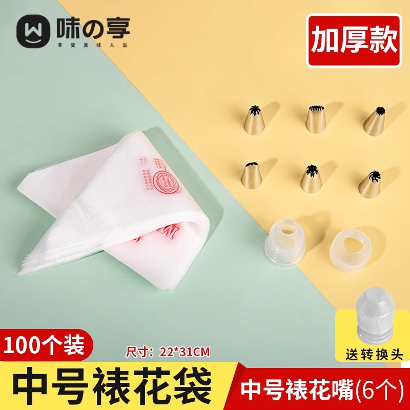 [Economical] Thickened medium size 100 pieces + medium size 6 decorating tips + converter