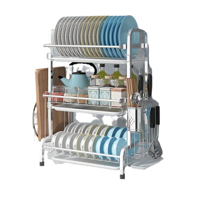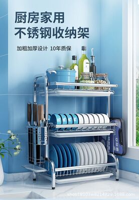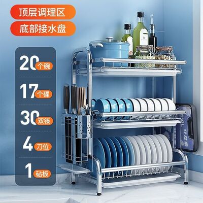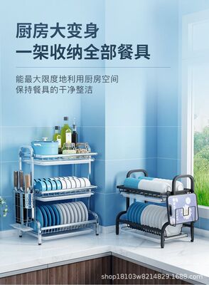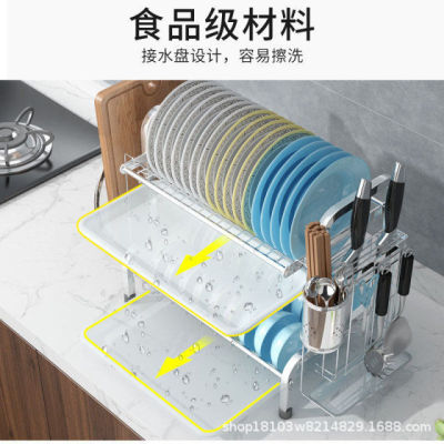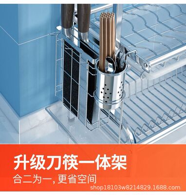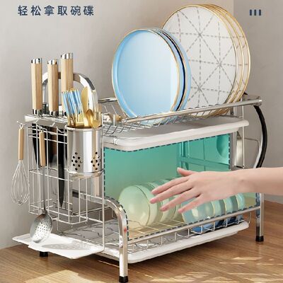亞馬遜專供不鏽鋼廚房台面式碗碟筷子砧板刀具筷叉勺瀝水收納架