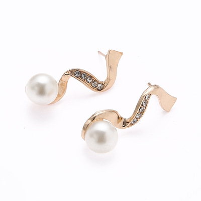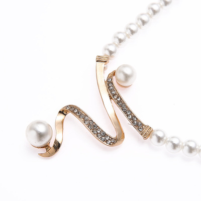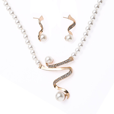 Fashion Imitation Pearl Studded Diamond Necklace Earrings Pendant 2-Piece Set Cross-Border Wish Bridesmaid Jewelry Factory Wholesale