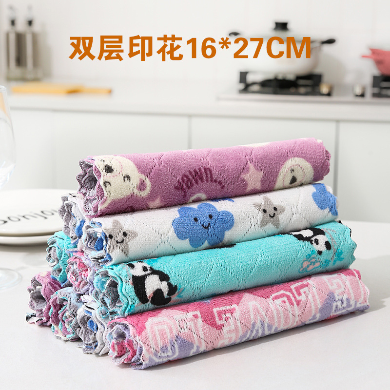 Kitchen rag printed coral velvet double layer thickened water absorbent cleaning non-stick oil dish towel wiping table scouring pad wholesale