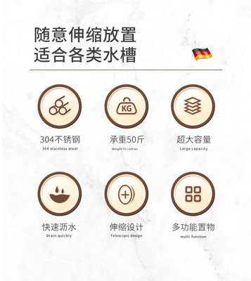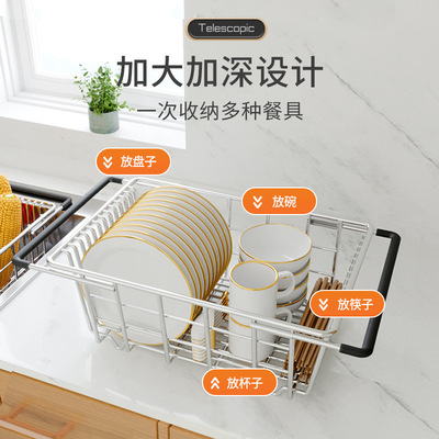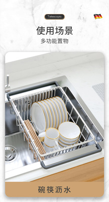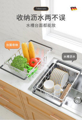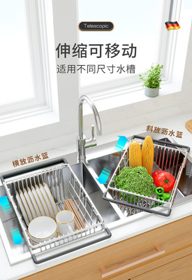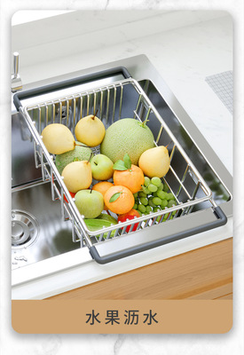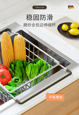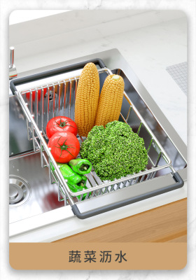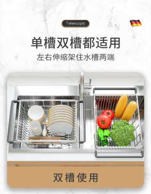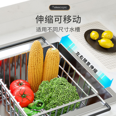 洗碗池水槽瀝水架洗菜盆瀝水籃304不鏽鋼廚房漏網架子過濾可伸縮